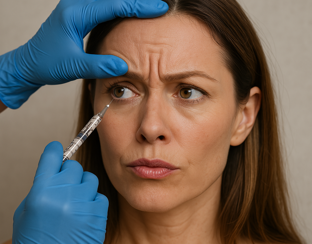 - Le Botox (toxine botulique) bloque les muscles responsables des rides d'expression. On l'utilise principalement sur le front, entre les sourcils et autour des yeux.