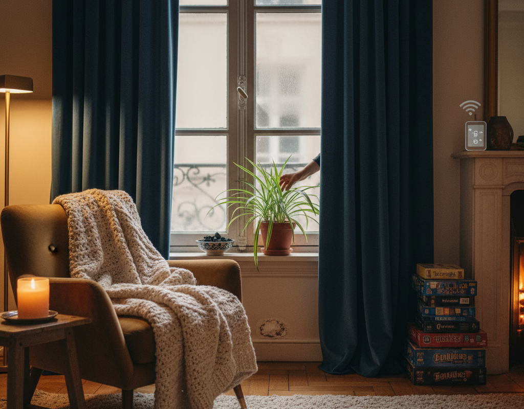 - Rideaux thermiques : posés au bon endroit, ils transforment ton salon en cocon instantané.
