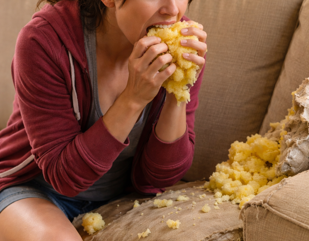 Les spécialistes identifient ce type de comportement sous le nom de pica : un trouble du comportement alimentaire caractérisé par l’ingestion répétée de substances non alimentaires, sans valeur nutritive, comme de la terre, du papier, des éponges ou — dans ce cas — de la mousse de canapé. Le terme vient du nom de la pie (en latin pica pica), un oiseau réputé pour manger presque n’importe quoi. Ce syndrome est reconnu scientifiquement et figure dans les manuels de psychiatrie comme un trouble bien réel.