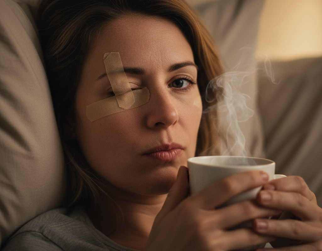 - Tape l’œil affecté la nuit pour éviter qu’il ne reste ouvert. Le ruban devient complice du sommeil.