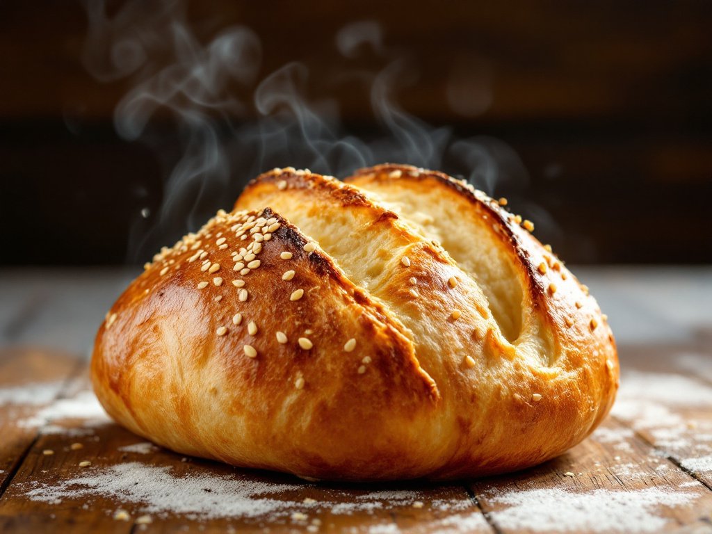 6. Cuire le pain : Préchauffez votre four à 240°C avec une cocotte en fonte ou une plaque de cuisson à l’intérieur. Enfournez votre pain, vaporisez un peu d’eau pour créer de la vapeur, et faites cuire 30 minutes à couvert, puis 15 minutes à découvert pour obtenir une croûte dorée.